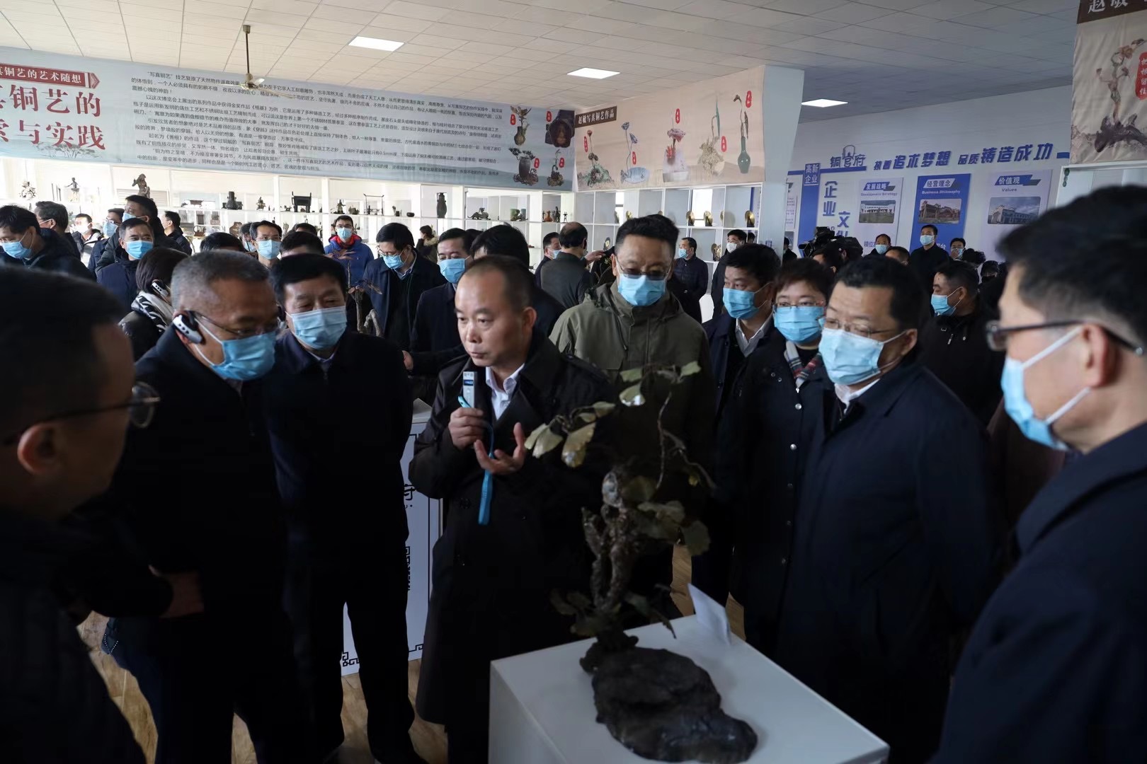 1月12日下午,中共銅陵市委十屆十四次全體(擴(kuò)大)會(huì)議期間,市委書記丁純,市委副書記、市長(zhǎng)胡啟生及各市直部門、開發(fā)園區(qū)和縣區(qū)主要負(fù)責(zé)人等近百人,現(xiàn)場(chǎng)觀摩銅官府銅藝產(chǎn)業(yè)園。全體委員還集中參觀了全國(guó)景泰藍(lán)職業(yè)技能競(jìng)賽參加決賽選手作品以及趙敏的寫真銅藝作品等。